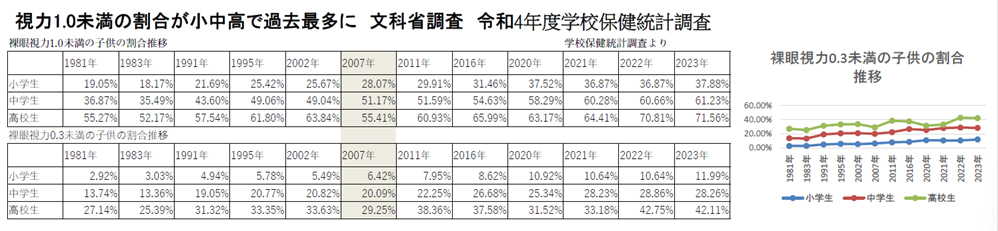 | 年々増加する近視率 | ↑上昇中 |